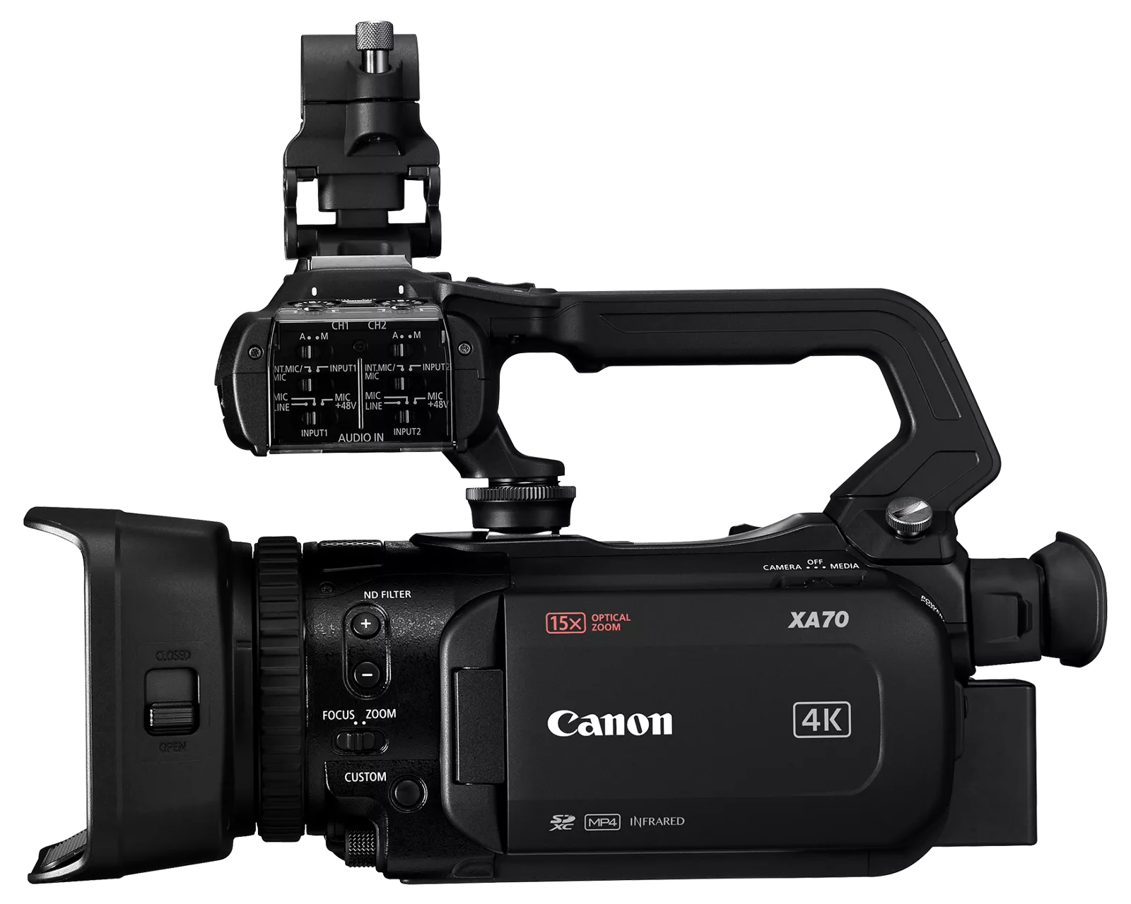 Shoot high quality 4K UHD video with the compact XA70. The camera delivers outstanding oversampled HD, Dual Pixel CMOS AF, a 15x optical zoom lens and HD livestreaming with UVC1 via a USB-C connection to a PC or Mac. Capture footage for recording or sharing later in either XF-AVC or MP4 formats.