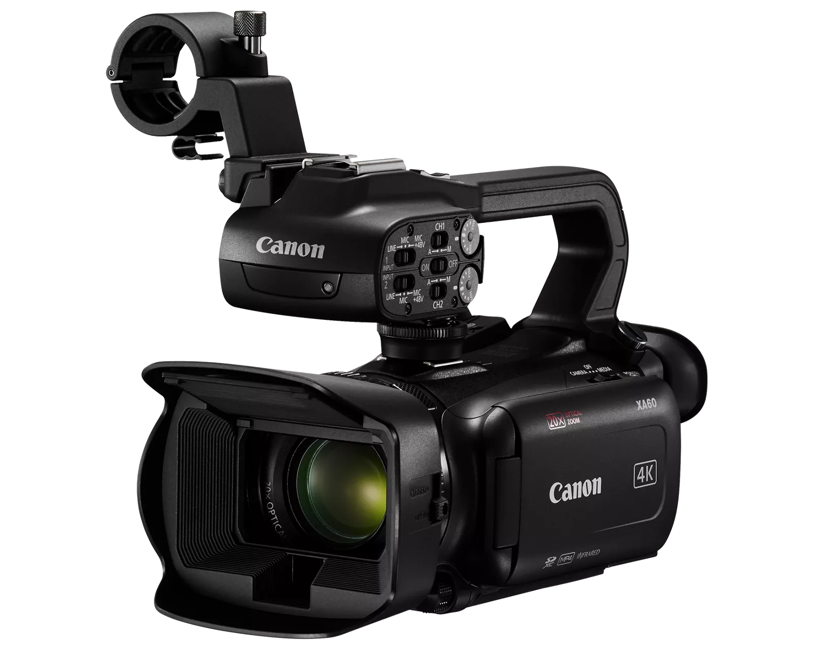 Shoot high quality 4K UHD video with the compact XA60. The camera delivers outstanding oversampled HD, advanced autofocus, a Canon 20x optical zoom lens, HD livestreaming with UVC1 via a USB-C connection to a PC or Mac and can capture footage for recording or sharing later in either XF-AVC or MP4 formats.