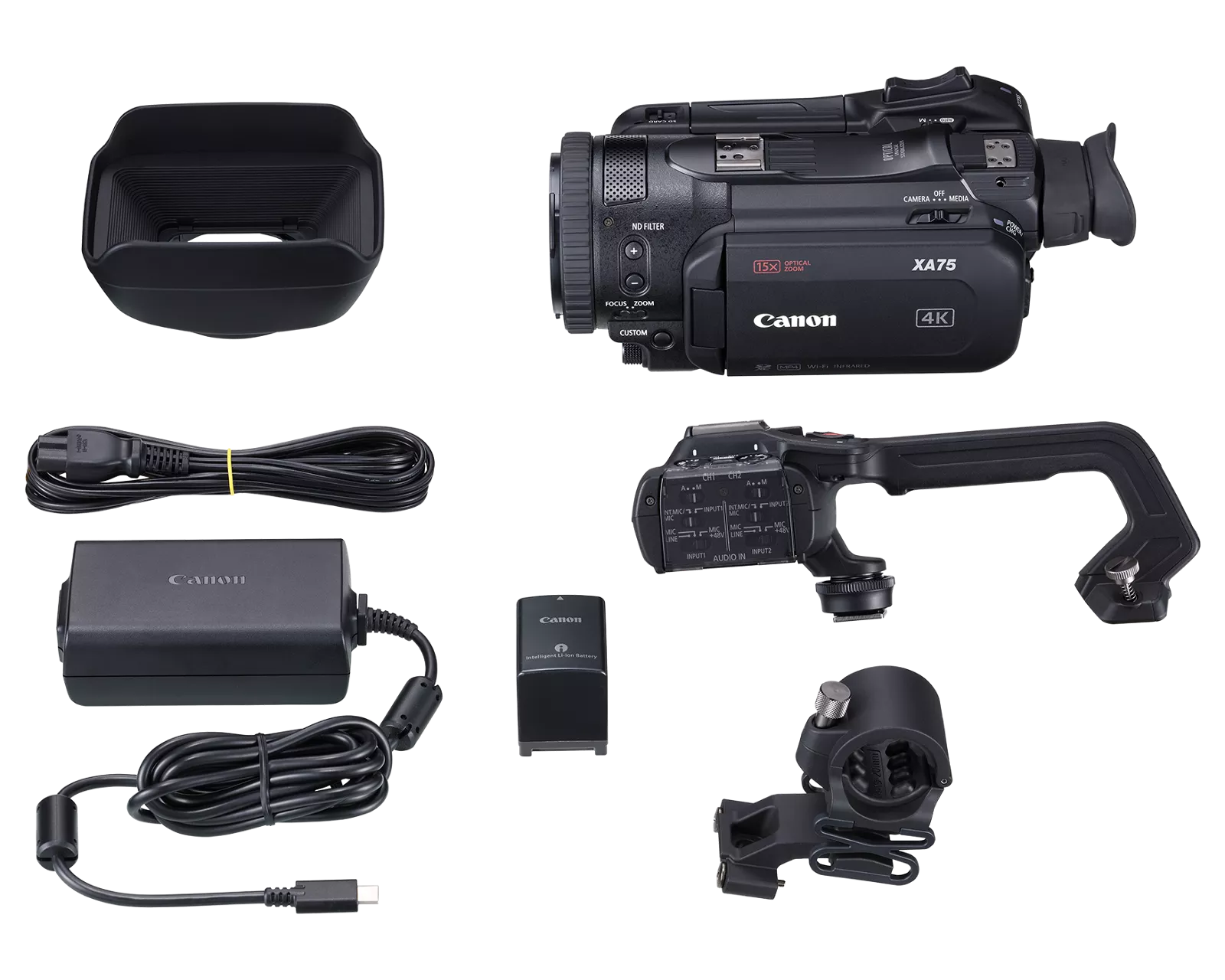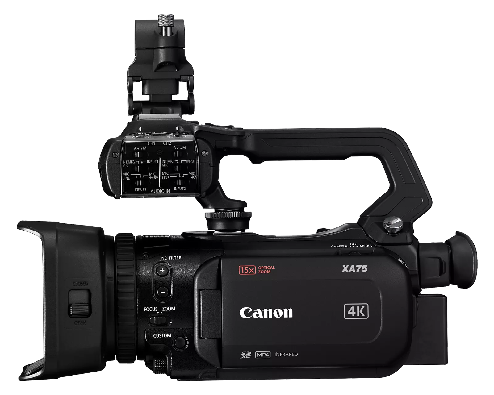 Shoot high quality 4K UHD video with the compact XA75. The camera delivers outstanding oversampled HD, Dual Pixel CMOS AF, a 15x optical zoom lens and HD livestreaming with UVC1 via a USB-C connection to a PC or Mac. Capture footage for recording or sharing later in either XF-AVC or MP4 formats.