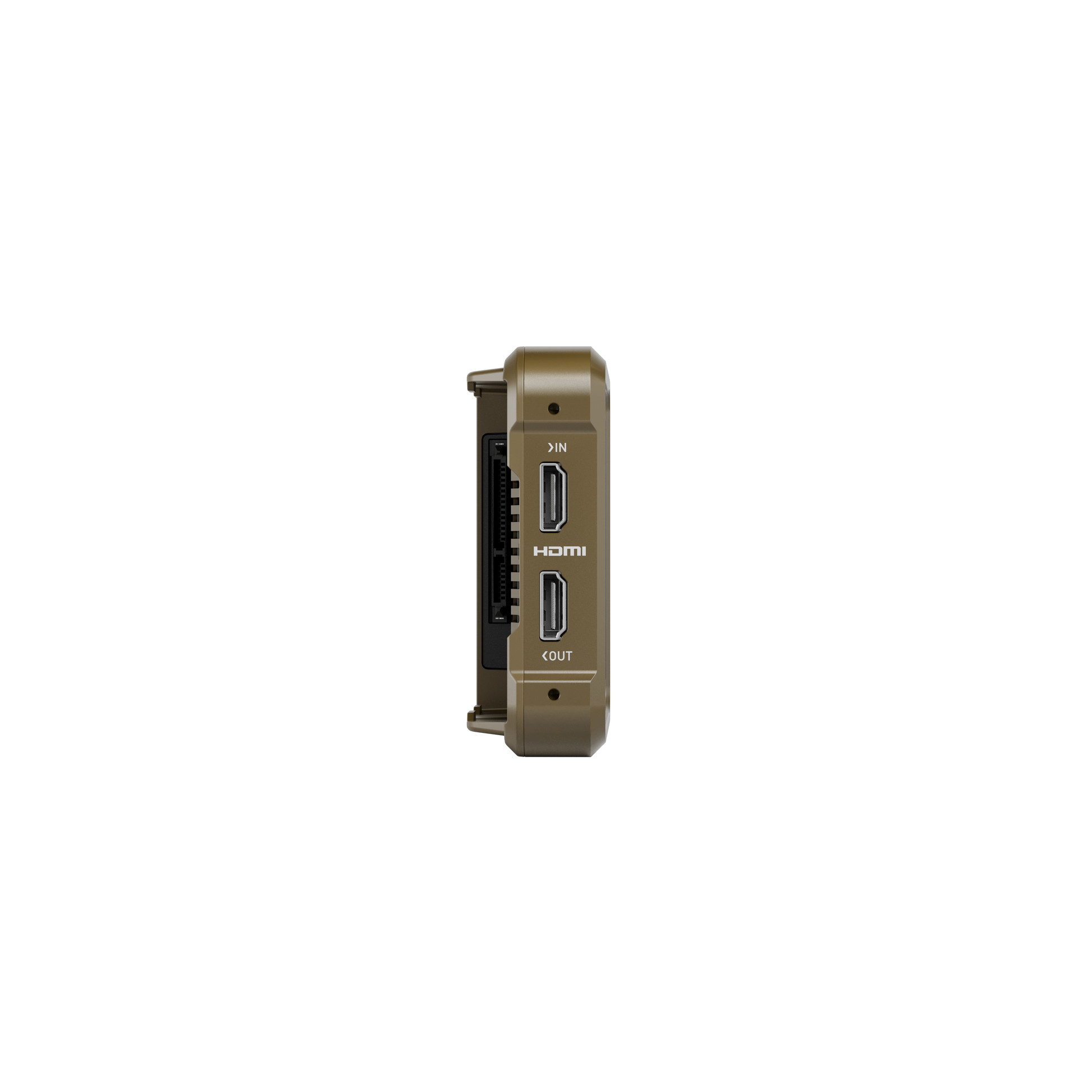 To record up to 8K using advanced edit-ready formats like ProRes RAW, ProRes, and DNxHD/HR, you need fast and robust storage – and lots of it. Ninja supports removable SSD drives, which provide the space and sustained performance you need. AtomX SSDmini drives are more compact than standard SATA SSDs: an affordable alternative to an SD card of equivalent capacity or performance. They support up to 4TB storage, sequential read speeds of up to 550MB/s and write speeds up to 500MB/s. AtomX SSDmini drives record up to 150 minutes of 4K ProRes. Measuring 8cm long, 7.5cm wide and weighing as little as 88g, the custom-built drive neatly fits into the Ninja