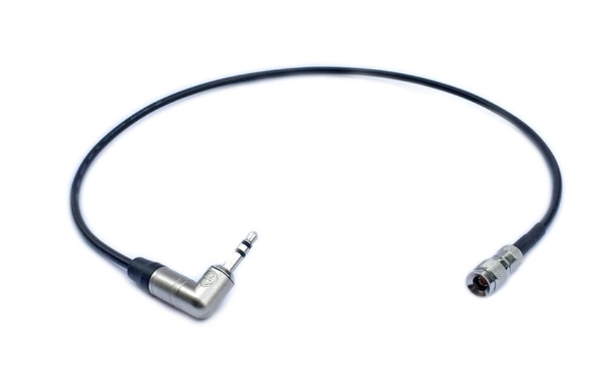 Sync timecode using the UltraSync ONE with a device that has a 3.5mm line input with this LTC to Right-Angle 3.5mm Mic-Level Timecode Cable from Atomos. The cable features a right-angle 3.5mm connector for your device such as a DSLR or audio recorder, and the other end features a DIN 1.0/2.3 BNC connector that plugs into the LTC port of your UltraSync ONE timecode sync unit.