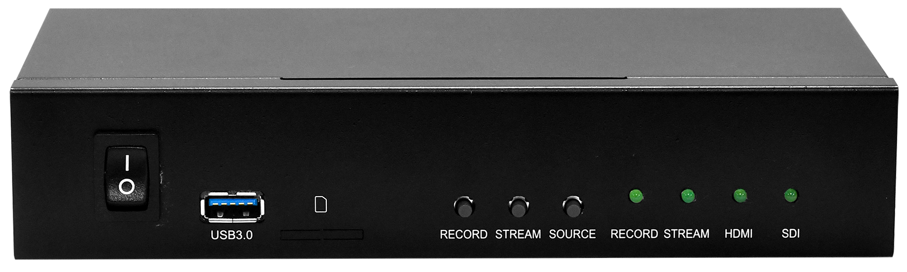 - Physical buttons on front panel for Streaming, Recording and Source selection