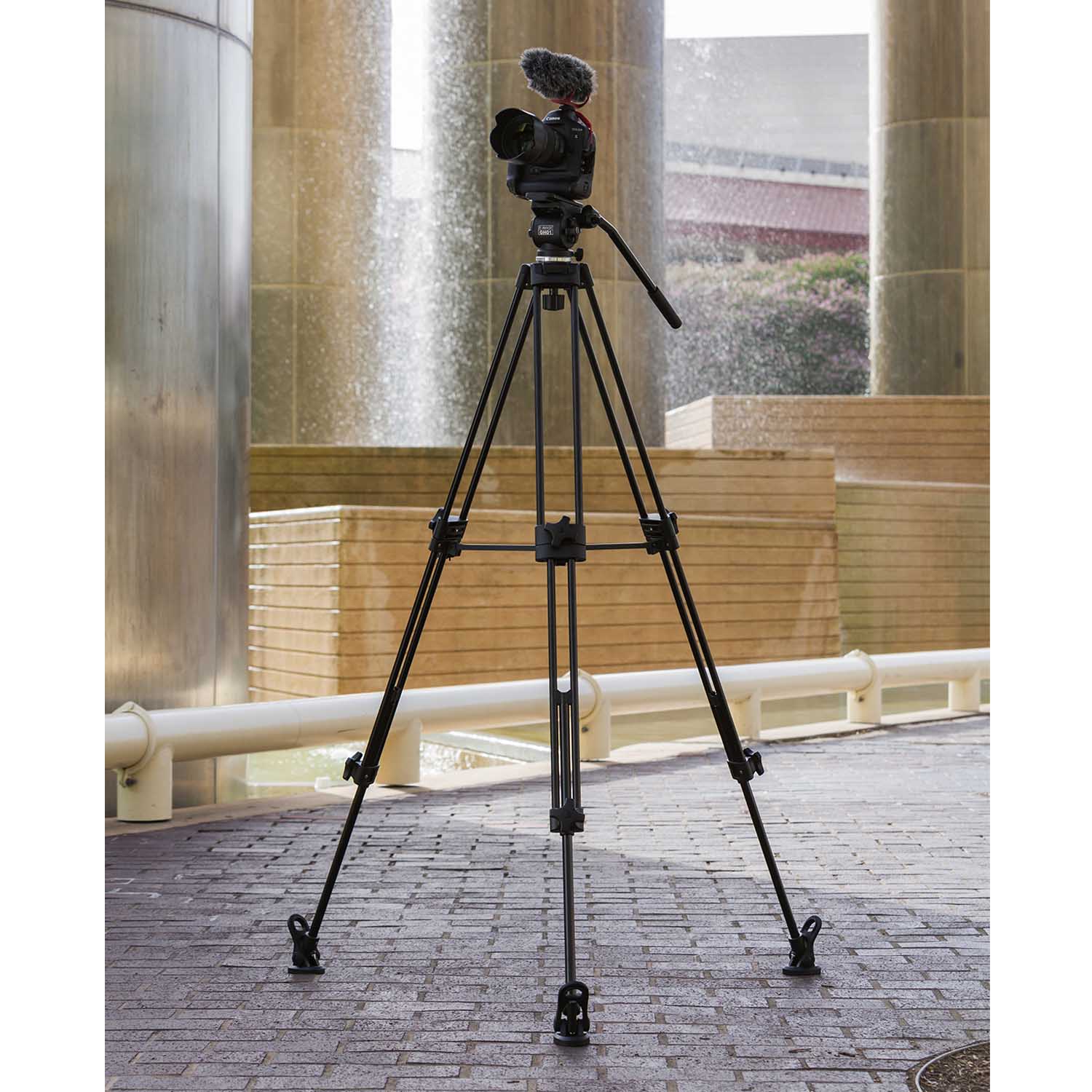 The AT7402B tiered video tripod legs can support up to 88 lbs and are easily adjusted with large revolving locks for each leg’s two stages. These legs come with an integrated mid-level spreader and padded F3 tripod feet that are easily removable for setting up on soft ground. A 65mm bowl for lightweight video heads tops off the set.