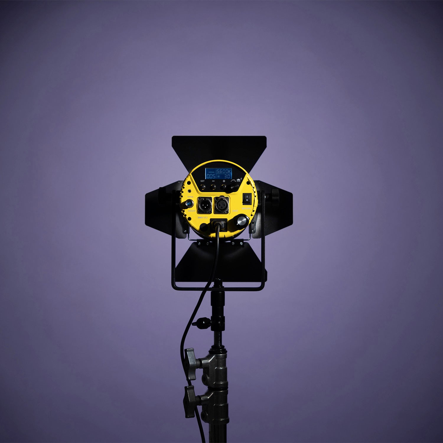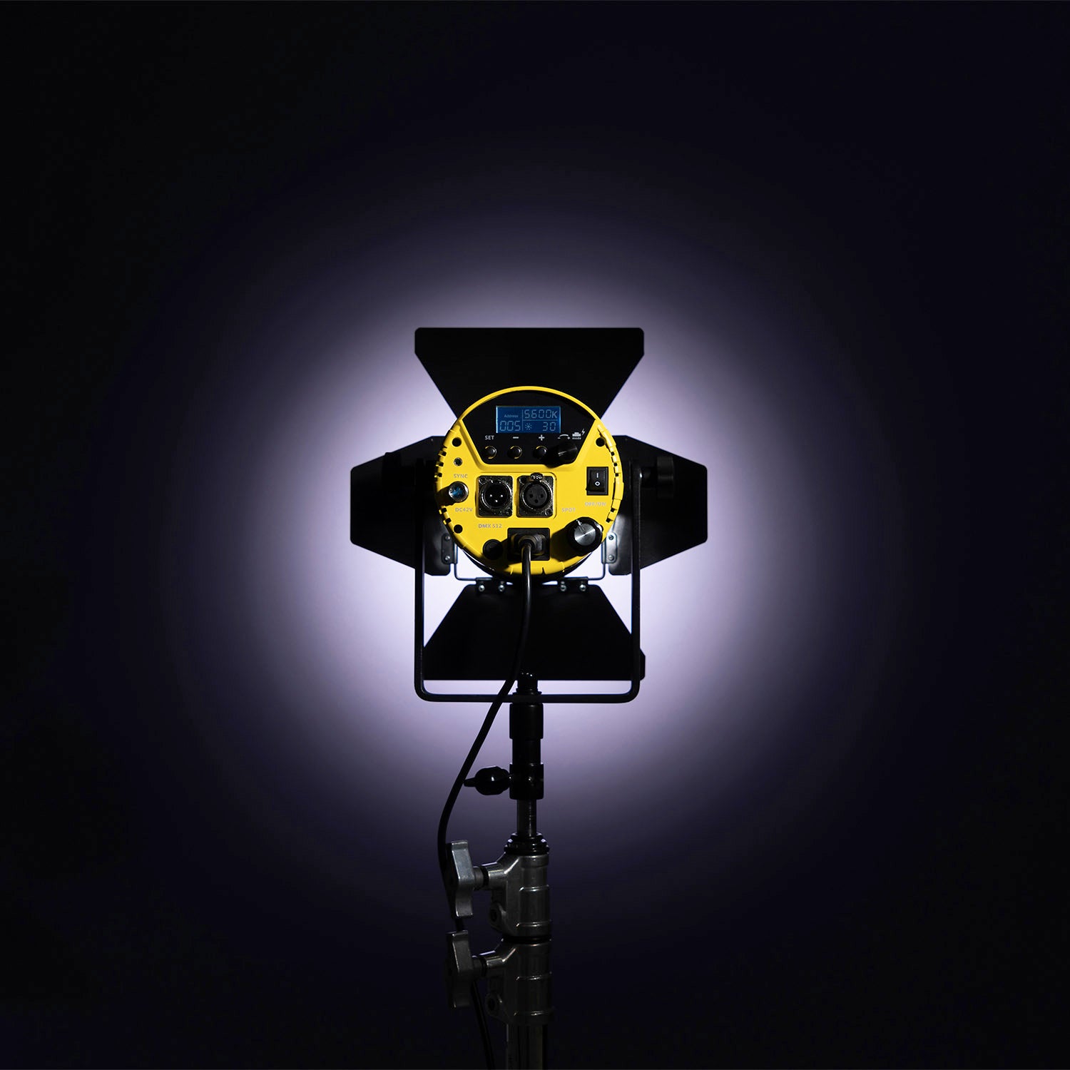 The Helia HF150 is a 4″ Fresnel light with an 150W output and a bi-color range from 3200K to 5600K. Equipped with an 8-leaf barn door, the Helia HF150 provides enhanced light control, allowing you to sculpt your lighting with ease. Whether you prefer on-device control or DMX512 functionality, the Helia HF150 offers options to suit your workflow.