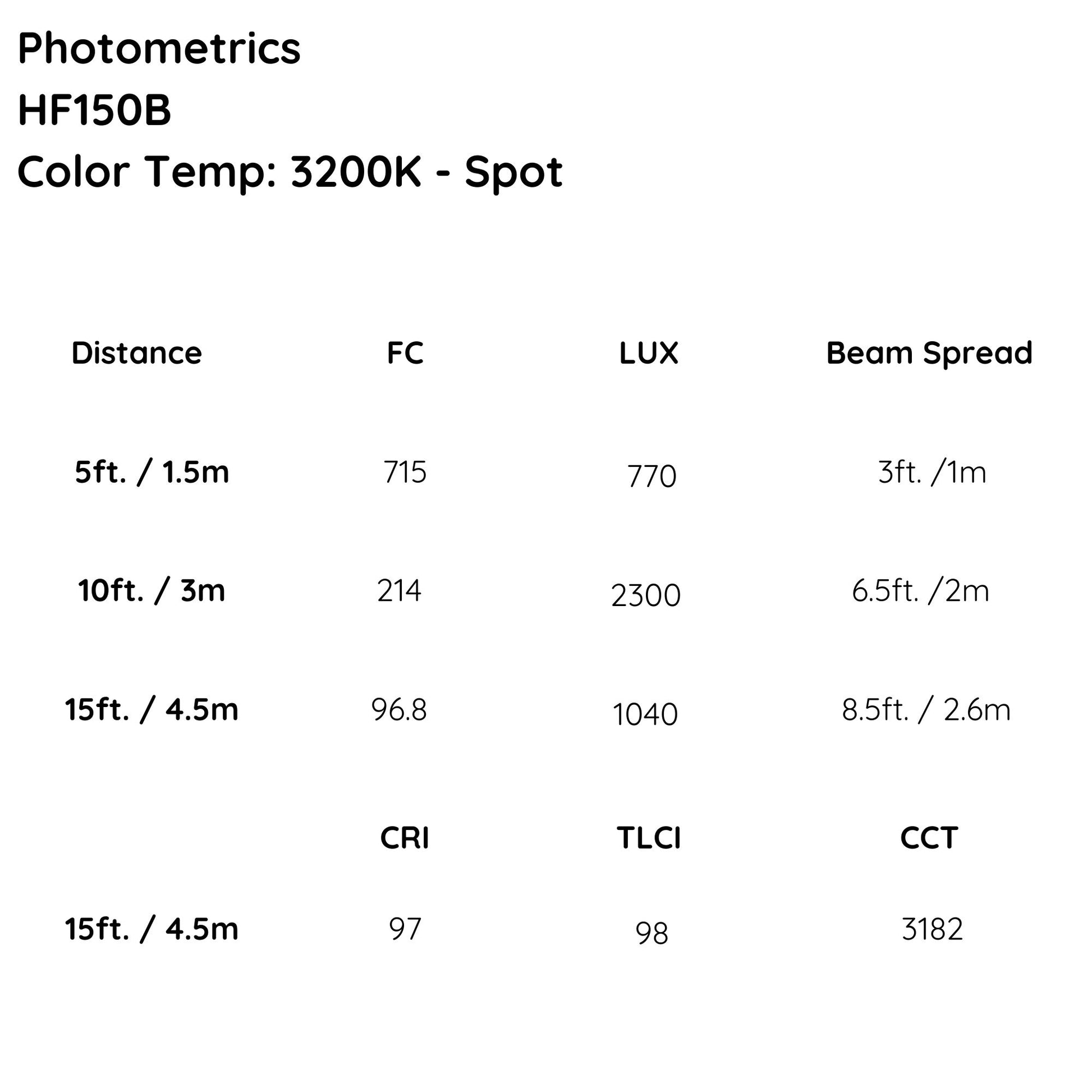 The 4″ Fresnel lens gives professionals better control over the use of the light. With its bi-color capabilities, the HF150 can help color match in all production situations. The Helia has a very consistent color across all temperatures giving it high CRI and TLCI ratings.