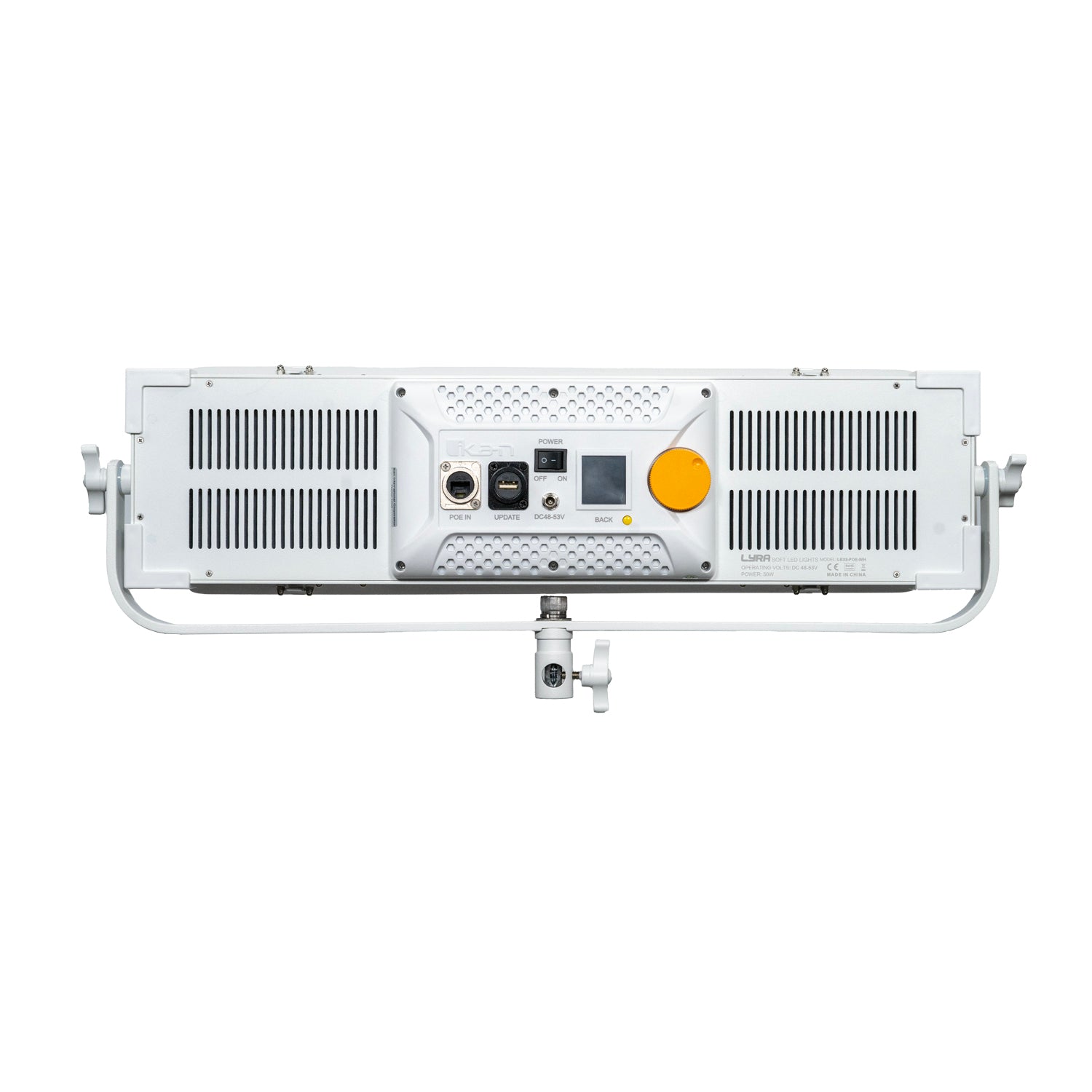 The Ikan LBX8-POE is crafted with versatility and practicality in mind, specifically for spaces with limited ceiling clearance. To accommodate a variety of lighting setups, the LBX8 is equipped with a convenient baby 5/8″ and junior 1 1/8″ combo pin, enabling it to be mounted on a grid or securely positioned on a light stand.