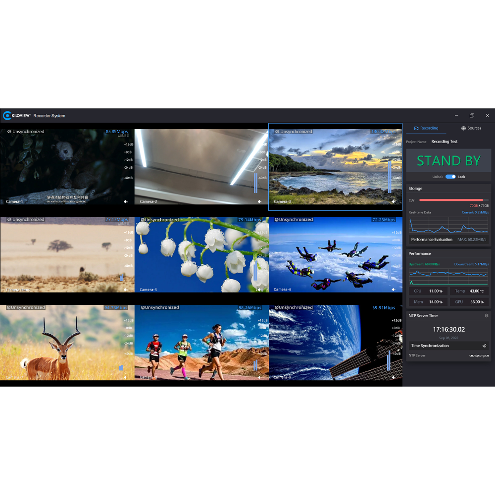 CUBE R1 supports a self-defined NTP Server to make sure all the NDI sources are recorded in synchronized status. One-click Recording is supported, with one single press, easy the way of recording.