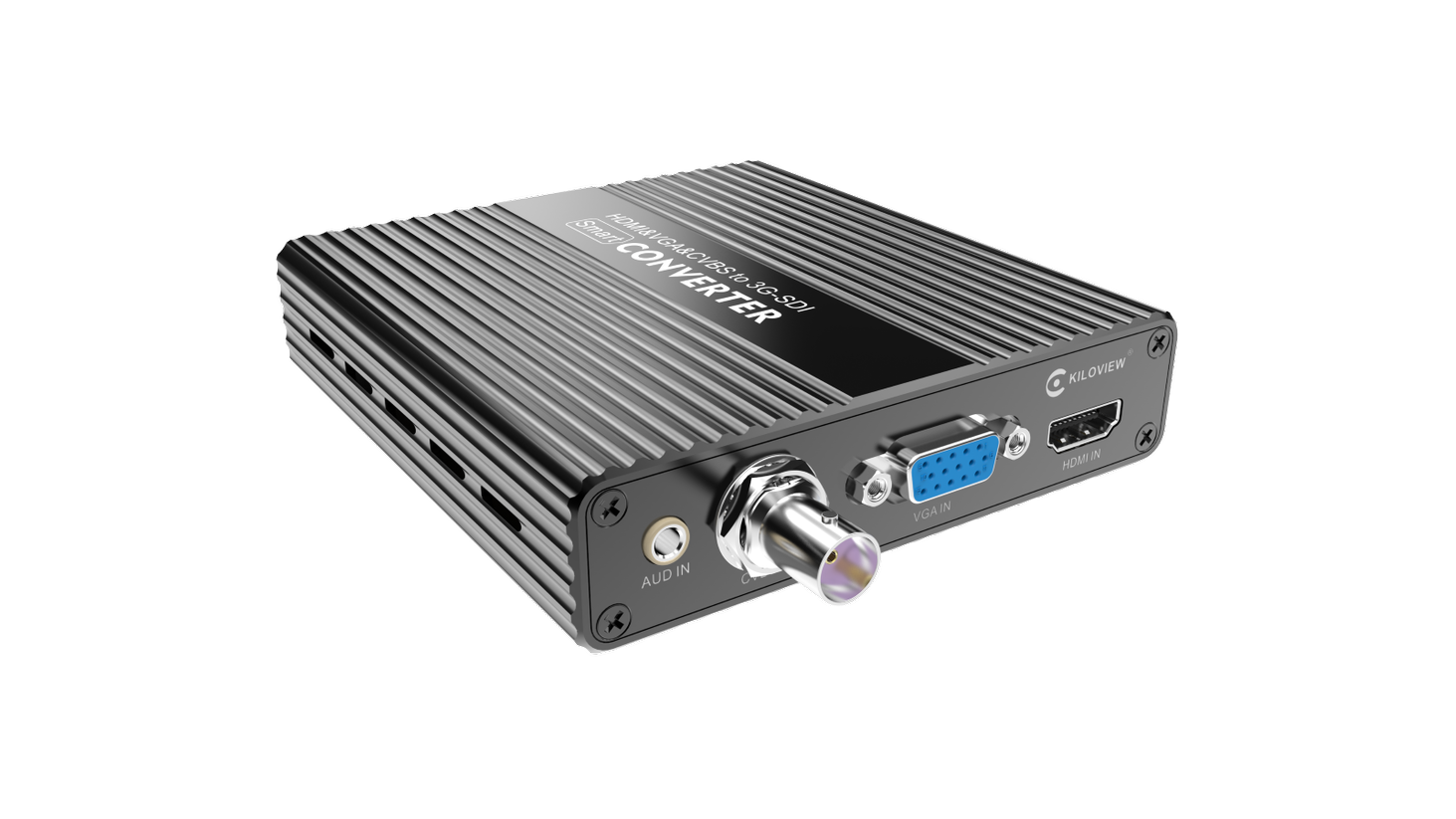 Kiloview KV-CV190 is a broadcast level multifunctional video converter which can convert HDMI, VGA and AV(CVBS) to SDI-based coax signal with functions of frame conversion, resolution conversion, image scale up/down, color conditioning, image