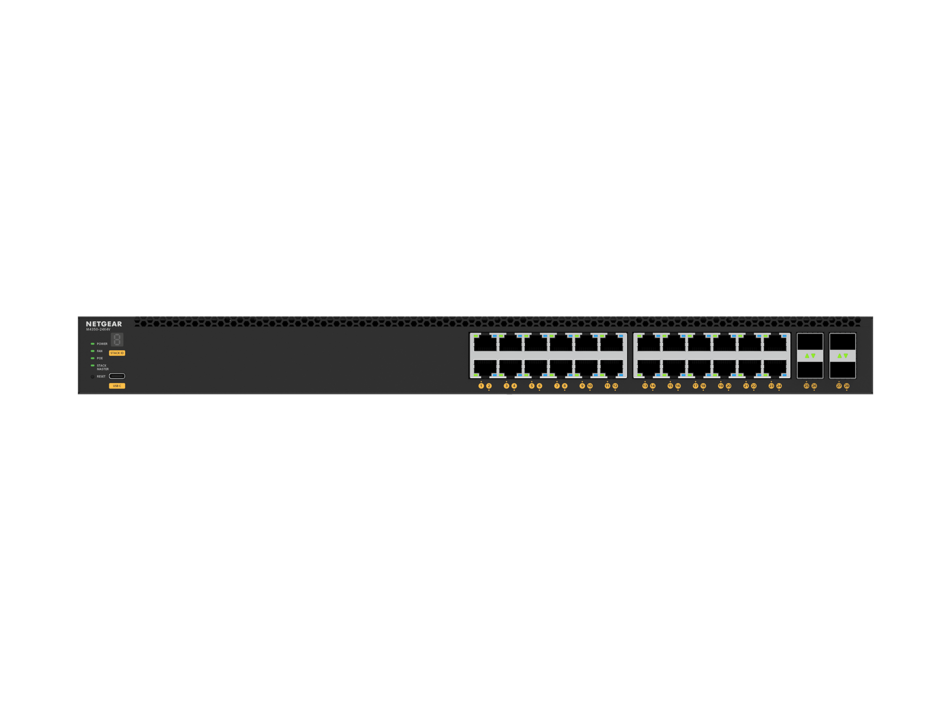 NETGEAR 24x10G/Multi-Gig PoE+ (576W base, up to 720W) and 4xSFP28 25G (XSM4328CV) (TAA Compliant)