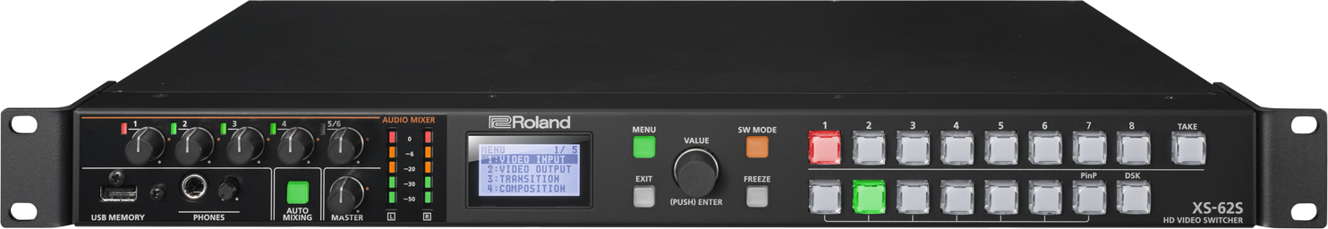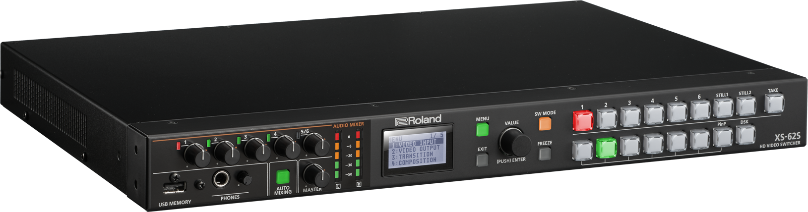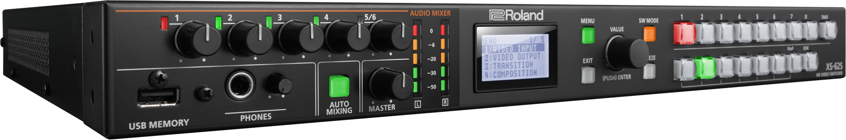 Performance venues will benefit greatly from the built-in auto mixing function. The auto-mixing function automatically balances incoming audio sources such as microphones from a discussion panel, making it easy for the operator. The XS-62S’s audio processing also includes advanced effects such as EQ, dynamics and delay for mixing of vocal speech along with music and other audio embedded in video sources. These effects will provide improved sound quality for streaming applications, recording and sound reinforcement.