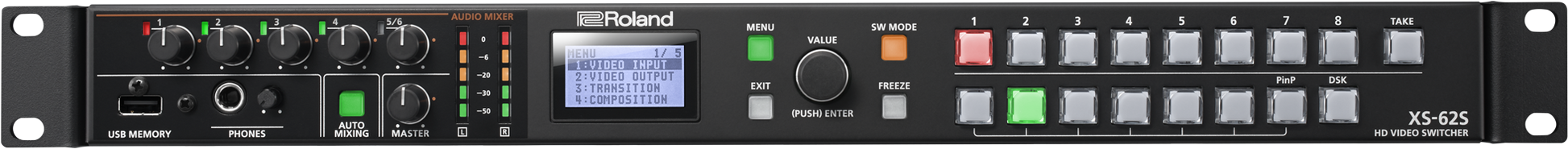The XS-62S is a compact 1U rack mount, compact 6-channel video switcher with audio mixer and PTZ camera control capabilities for both permanent installs and on-site events. This powerful, integrated solution supports a wide range of applications including presentation and performance and special event venues, corporate AV conferences, classrooms for e-learning and more. The XS-62S is a great space saving unit that is easy to control from the front panel buttons and menu screen, or from a PC or Mac using realtime remote control software (RCS).