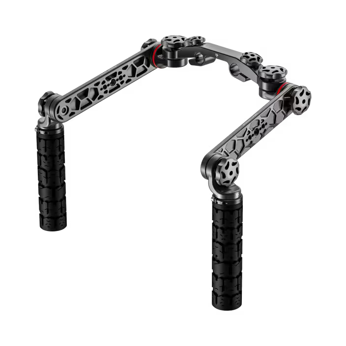 Available in three configurations—19mm Studio, 15mm Studio, and 15mm LWS—these rod based handgrip kits are built for strength, comfort, and speed on set. Each kit includes a crossbar, two 6” extensions, a pair of ODI BMX-style handgrips, stainless steel DLC-coated knobs, and eight color rings for camera ID customization.
