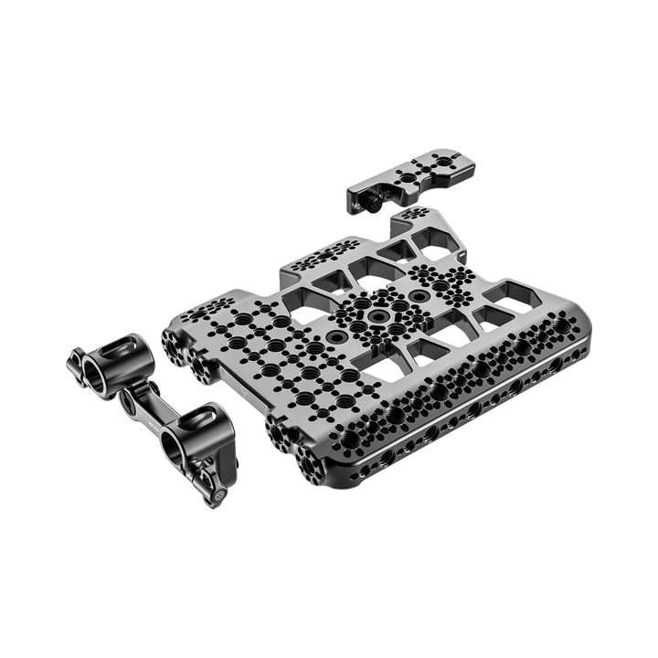 This system starts with a Riser Plate and ARCA Base Plate that keeps your build at the appropriate optical height for mounting accessories in traditional cinema workflows. The Riser Plate facilitates an open design, allowing efficient airflow to the camera. These plates combined are compatible with any bridge plates that use ARRI Standard height. Utilizing the built-in ARCA system, it allows for quick transitions between Steadicam, shoulder, or tripod workflows with Wooden Camera ARCA accessories.