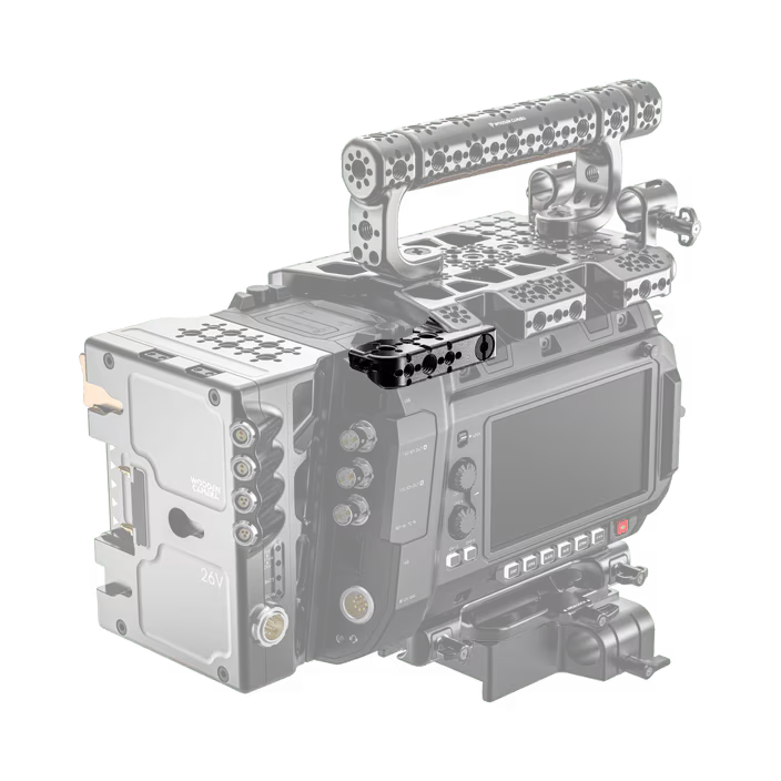 Extend the mounting capabilities of the Top Plate for Blackmagic URSA Cine 12K/17K by adding an extension block. This attaches to the back of the Top Plate on the Assistant’s Side of the camera secured by ⅜”-16 screw and anti-twist pins to any flex while the block is connected. This is designed to hug the camera's edge for a sleek unobstructed addition to the user's setup.
